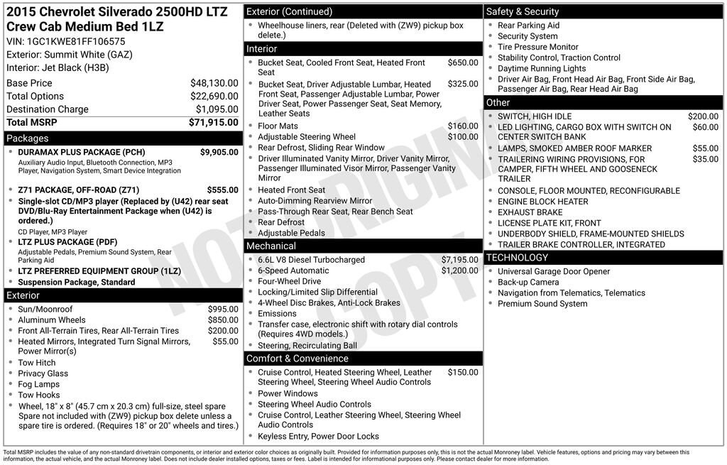 We quickly nicknamed our truck "The Beast". Have had it for 2yrs. It is very comfortable, very quiet, has a well laid out dashboard with easy to read gauges. I've been pulling our 8,000 RV trailer and have gone from Prince Edward Island to Nevada... if I didn't look in the rearview mirror I'd never know I was pulling the trailer. Excellent brakes and good handling. So far my only complaint is the ridiculous place GM put the DEF fluid intake - its in the engine compartment next to the firewall, nearly impossible to fill with out spilling DEF. It could use more storage space for tools... but that's about it. Its a tough powerful truck.