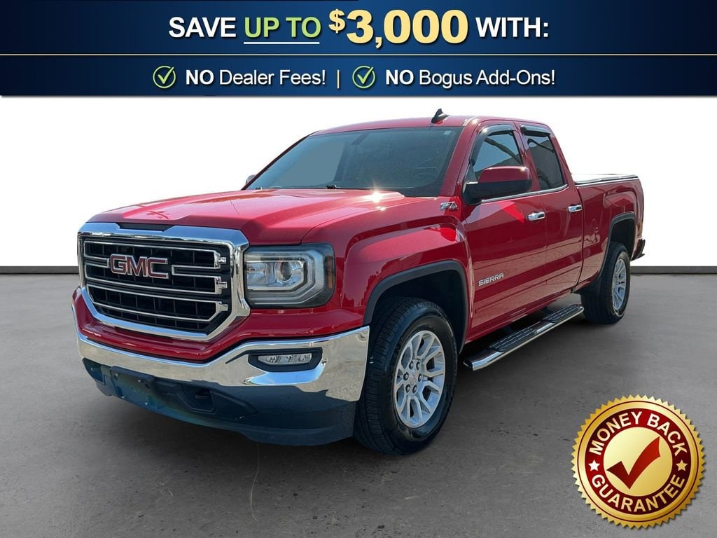 Priced below KBB Fair Purchase Price!2017 GMC Sierra 1500 SLE Cardinal Red SLE 4WD 6-Speed Automatic Electronic with Overdrive EcoTec3 5.3L V8 6-Speed Automatic Electronic with Overdrive, 4WD, Jet Black Cloth, 10-Way Power Driver's Seat Adjuster, 110-Volt AC Power Outlet, 150 Amp Alternator, 2-Speed Active Electronic AutoTrac Transfer Case, 3.42 Rear Axle Ratio, 4-Wheel Disc Brakes, 4.2 Diagonal Color Display Driver Info Center, 40/20/40 Front Split Bench Seat, 6 Speakers, 6-Speaker Audio System, ABS brakes, Air Conditioning, Alloy wheels, AM/FM radio, Auxiliary External Transmission Oil Cooler, Body Color Bodyside Moldings, Body Color Door Handles, Body Color Power Adjustable Heated Outside Mirrors, Body-Color Mirror Caps, Bodyside moldings, Brake assist, Bumpers: chrome, CD player, Cloth Seat Trim, Color-Keyed Carpeting, Compass, Deep-Tinted Glass, Delay-off headlights, Driver & Front Passenger Illuminated Vanity Mirrors, Driver door bin, Driver vanity mirror, Dual front impact airbags, Dual front side impact airbags, Dual-Zone Automatic Climate Control, Electric Rear-Window Defogger, Electronic Stability Control, Emergency communication system: OnStar Guidance, Exterior Parking Camera Rear, EZ Lift & Lower Tailgate, Front & Rear All-Weather Floor Mats, Front anti-roll bar, Front Center Armrest w/Storage, Front Frame-Mounted Black Recovery Hooks, Front License Plate Kit, Front reading lights, Front wheel independent suspension, Fully automatic headlights, HD Radio, Heated door mirrors, Heavy Duty Suspension, Heavy-Duty Rear Locking Differential, High-Intensity Discharge Headlights, Hill Descent Control, Illuminated entry, Leather Wrapped Steering Wheel w/Cruise Controls, LED Cargo Box Lighting, Low tire pressure warning, Manual Tilt/Telescoping Steering Column, Occupant sensing airbag, Off-Road Suspension Package, OnStar 3 Month Guidance Plan, OnStar w/4G LTE, Outside temperature display, Overhead airbag, Overhead console, Panic alarm, Passenger door bin, Passenger vanity mirror, Power Adjustable Pedals, Power door mirrors, Power Sliding Rear Window w/Defogger, Power steering, Power windows, Power Windows w/Driver Express Up & Down, Preferred Equipment Group 3SA, Radio data system, Radio: AM/FM Stereo w/8 Diagonal Color Touch Nav., Radio: AM/FM Stereo w/8 Diagonal Color Touch Screen, Rear 60/40 Folding Bench Seat (Folds Up), Rear reading lights, Rear step bumper, Rear Vision Camera, Rear Wheelhouse Liners, Remote Keyless Entry, Remote keyless entry, Remote Locking Tailgate, Remote Vehicle Starter System, Rubberized-Vinyl Front Floor Mats, Rubberized-Vinyl Rear Floor Mats, Single Slot CD/MP3 Player, Single-Zone Air Conditioning, SiriusXM Satellite Radio, SLE Convenience Package, SLE Value Package, Speed control, Speed-sensing steering, Split folding rear seat, Steering Wheel Audio Controls, Steering wheel mounted audio controls, Tachometer, Theft Deterrent System (Unauthorized Entry), Thin Profile LED Fog Lamps, Tilt steering wheel, Traction control, Trailering Equipment, Trip computer, Ultrasonic Rear Park Assist, Universal Home Remote, Variably intermittent wipers, Voltmeter, Wheels: 17 x 8 Bright Machined Aluminum, Wheels: 18 x 8.5 Bright Machined Aluminum, 6-Speed Automatic Electronic with Overdrive, 4WD, Jet Black Cloth.Recent Arrival! Odometer is 21038 miles below market average!Awards:* 2017 KBB.com Brand Image AwardsReviews:* Strong combination of fuel economy and power; comfortable, quiet cabin; compliant ride quality makes it suitable for daily use; many available configurations and trims Source: Edmunds