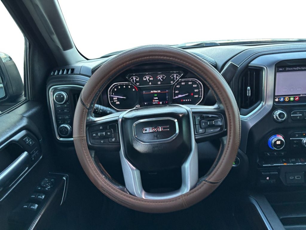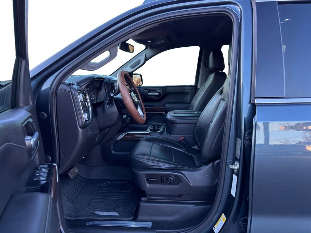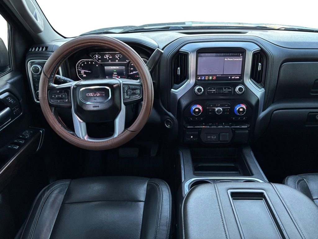 2019 GMC Sierra 1500 SLT Dark Sky Metallic SLT 4WD 8-Speed Automatic EcoTec3 5.3L V8 8-Speed Automatic, 4WD, Jet Black Leather, 10-Way Power Driver Seat Adjuster w/Lumbar, 10-Way Power Passenger Seat Adjuster w/Lumbar, 12-Volt Rear Auxiliary Power Outlet, 120-Volt Bed Mounted Power Outlet, 120-Volt Instrument Panel Power Outlet, 170 Amp Alternator, 2 USB Ports, 2 USB Ports (1st Row), 20 x 9 Polished Aluminum Wheels, 3.23 Rear Axle Ratio, 4-Wheel Disc Brakes, 6 Speakers, 6-Speaker Audio System Feature, ABS brakes, Air Conditioning, Alloy wheels, AM/FM radio: SiriusXM, Apple CarPlay/Android Auto, Auto-dimming door mirrors, Auto-dimming Rear-View mirror, Automatic temperature control, Auxiliary External Transmission Oil Cooler, Brake assist, Bumpers: chrome, Chrome Assist Steps, Chrome Grille, Color-Keyed Carpeting Floor Covering, Compass, Deep-Tinted Glass, Delay-off headlights, Driver door bin, Driver Memory, Driver vanity mirror, Dual front impact airbags, Dual front side impact airbags, Electric Rear-Window Defogger, Electrical Lock Control Steering Column, Electronic Stability Control, Floor Mounted Console, Front 40/20/40 Split-Bench Seat, Front anti-roll bar, Front Bucket Seats, Front Center Armrest w/Storage, Front dual zone A/C, Front fog lights, Front Frame-Mounted Black Recovery Hooks, Front reading lights, Front wheel independent suspension, Fully automatic headlights, GMC 4G LTE, GMC Connected Access, HD Radio, Heated 2nd Row Outboard Seats, Heated door mirrors, Heated Driver & Front Passenger Seating, Heated front seats, Heated steering wheel, Heavy Duty Suspension, Heavy-Duty Rear Locking Differential, Hitch Guidance, Hitch Guidance w/Hitch View, Illuminated entry, In-Vehicle Trailering App, Integrated Trailer Brake Controller, Keyless Open & Start, LED Cargo Area Lighting, Low tire pressure warning, Manual Tilt-Wheel & Telescoping Steering Column, Memory seat, Occupant sensing airbag, OnStar & GMC Connected Services Capable, Outside temperature display, Overhead airbag, Overhead console, Panic alarm, Passenger door bin, Passenger vanity mirror, Perforated Leather-Appointed Seat Trim, Power Door Locks, Power door mirrors, Power driver seat, Power Front Passenger Windows w/Express Up/Down, Power Front Windows w/Driver Express Up/Down, Power passenger seat, Power Rear Windows w/Express Down, Power Sliding Rear Window w/Rear Defogger, Power steering, Power windows, Preferred Equipment Group 4SA, Premium audio system: GMC Infotainment System, Radio data system, Radio: Premium GMC Infotainment Sys w/Multi-Touch, Rear Dual USB Charging-Only Ports, Rear reading lights, Rear seat center armrest, Rear step bumper, Rear Wheelhouse Liners, Rear window defroster, Remote keyless entry, Remote Vehicle Starter System, Security system, SiriusXM Radio, SLT Convenience Package, Speed control, Speed-sensing steering, Split folding rear seat, Steering Wheel Audio Controls, Steering wheel mounted audio controls, Tachometer, Telescoping steering wheel, Texas Edition Badging, Texas Edition SLT Premium Package, Theft Deterrent System (Unauthorized Entry), Tilt steering wheel, Traction control, Trailering Package, Trip computer, Universal Home Remote, Variably intermittent wipers, Ventilated Driver & Front Passenger Seats, Voltmeter, Wheels: 18 x 8.5 6-Spoke Machined Aluminum, 8-Speed Automatic, 4WD, Jet Black Leather.