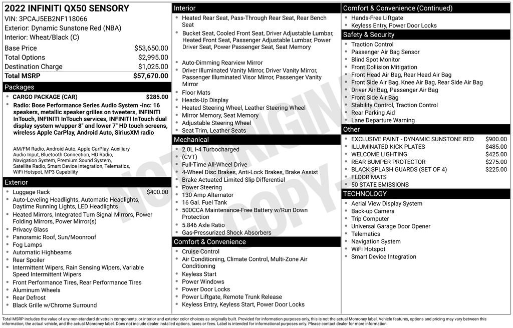 2022 INFINITI QX50 Sensory