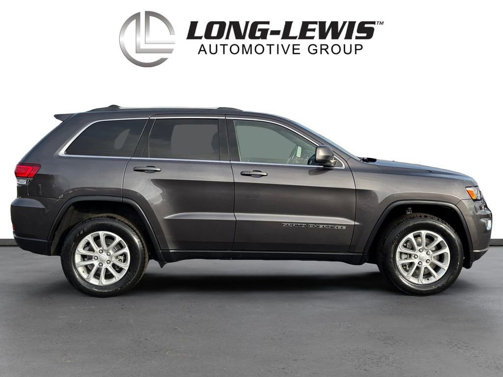 2021 Jeep Grand Cherokee Laredo E Granite Crystal Metallic Clearcoat Laredo E 4WD 8-Speed Automatic 3.6L V6 24V VVT 4WD, 3.45 Rear Axle Ratio, 4-Wheel Disc Brakes, 6 Speakers, ABS brakes, Air Conditioning, Alloy wheels, AM/FM radio: SiriusXM, Anti-whiplash front head restraints, Apple CarPlay, Apple CarPlay/Android Auto, Automatic temperature control, Brake assist, Bumpers: body-color, Cloth Bucket Seats, Compass, Delay-off headlights, Driver door bin, Driver vanity mirror, Dual front impact airbags, Dual front side impact airbags, Electronic Stability Control, Four wheel independent suspension, Front anti-roll bar, Front Bucket Seats, Front Center Armrest w/Storage, Front dual zone A/C, Front fog lights, Front License Plate Bracket, Front reading lights, Fully automatic headlights, Google Android Auto, GPS Antenna Input, Heated door mirrors, Illuminated entry, Integrated Voice Command w/Bluetooth, Knee airbag, Leather Shift Knob, Low tire pressure warning, Normal Duty Suspension, Occupant sensing airbag, Outside temperature display, Overhead airbag, Overhead console, Panic alarm, ParkView Rear Back-Up Camera, Passenger door bin, Passenger vanity mirror, Power door mirrors, Power driver seat, Power steering, Power windows, Quick Order Package 2BE Laredo E, Radio data system, Radio: Uconnect 4 w/7 Display, Rear anti-roll bar, Rear reading lights, Rear seat center armrest, Rear window defroster, Rear window wiper, Remote keyless entry, Roof rack: rails only, Speed control, Speed-sensing steering, Speed-Sensitive Wipers, Split folding rear seat, Spoiler, Steering Wheel Mounted Audio Controls, Steering wheel mounted audio controls, Tachometer, Telescoping steering wheel, Tilt steering wheel, Traction control, Trip computer, Variably intermittent wipers, Wheels: 18 x 8.0 Fine Silver Aluminum, 4WD.