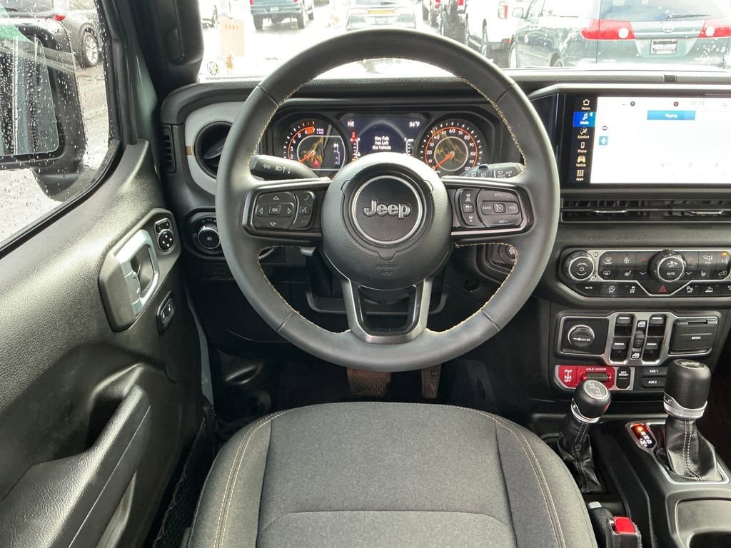 2024 Jeep Wrangler Willys Anvil Clear Coat Willys 4WD 8-Speed Automatic 3.6L V6 24V VVT 110 MPH Vehicle Max Speed Calibration, 2-Door Passive Entry, Front Door Locks, 240 Amp Alternator, 4-Wheel Disc Brakes, 4-Wheel Drive Swing Gate Decal, 7 & 4 Pin Wiring Harness, 8 Speakers, 97 MPH Vehicle Max Speed Calibration, ABS brakes, Advanced Brake Assist, Air Conditioning, Air Conditioning w/Auto Temperature Control, Air Filtering, AM/FM radio, Apple CarPlay/Android Auto, Auto High Beam Headlamp Control, Automatic Headlamps, Aux Battery, Auxiliary Switches, Black 3-Piece Hard Top, Black Grille, Blind Spot & Cross Path Detection, Brake assist, Class II Receiver Hitch, Cloth Low-Back Bucket Seats, Cluster 7.0 TFT Color Display, Compass, Convenience Group, Conventional Differential Front Axle, Corning Gorilla Glass, Dana M210 Wide HD Tube Front Axle, Dana M220 Wide Rear Axle, Daytime Running Lamps LED Accents, Deep Tint Sunscreen Windows, Delay-off headlights, Driver door bin, Driver vanity mirror, Dual front impact airbags, Dual front side impact airbags, E-Locker Rear Axle, Electronic Stability Control, Emergency/Assistance Call, Enhanced Adaptive Cruise Control, Freedom Panel Storage Bag, Front 1-Touch Down Power Windows, Front anti-roll bar, Front Bucket Seats, Front Center Armrest w/Storage, Front fog lights, Front LED Fog Lamps, Front reading lights, Full Speed Forward Collision Warning Plus, Heated Front Seats, Heated Steering Wheel, Injection Molded Black Rear Bumper, Integrated roll-over protection, LED Premium Reflector Headlamps, LED Taillamps, Low tire pressure warning, Mold In Color Bumper w/Gloss Black, Molded in Color Rubicon Highline Flare, MOPAR All-Weather Floor Mats, MOPAR Hardtop Headliner, No Soft Top, Non-Lock Fuel Cap w/o Discriminator, Normal Duty Suspension, Occupant sensing airbag, Off-Road Plus Mode, Outside temperature display, Overhead airbag, ParkSense Rear Park Assist System, ParkView Rear Back-Up Camera, Passenger door bin, Passenger vanity mirror, Power Heated Mirrors, Power steering, Premium Wrapped Steering Wheel, Quick Order Package 24W Willys, Radio data system, Radio: Uconnect 5 w/12.3 Display, Rear anti-roll bar, Rear reading lights, Rear Window Defroster, Rear Window Wiper/Washer, Remote Keyless Entry, Remote Start System, Safety Group, Security Alarm, Speed control, Speed Sensitive Power Locks, Split folding rear seat, Steering wheel mounted audio controls, Stop-Start Dual Battery System, Sun Visors w/Illuminated Vanity Mirrors, Tachometer, Telescoping steering wheel, Tilt steering wheel, Traction control, Trip computer, Universal Garage Door Opener, Variably intermittent wipers, Wheels: 17 x 7.5 Black Steel Styled, Wheels: 17 x 7.5 Painted Black, Willy's Suspension, Willys, Willys Hood Decal.