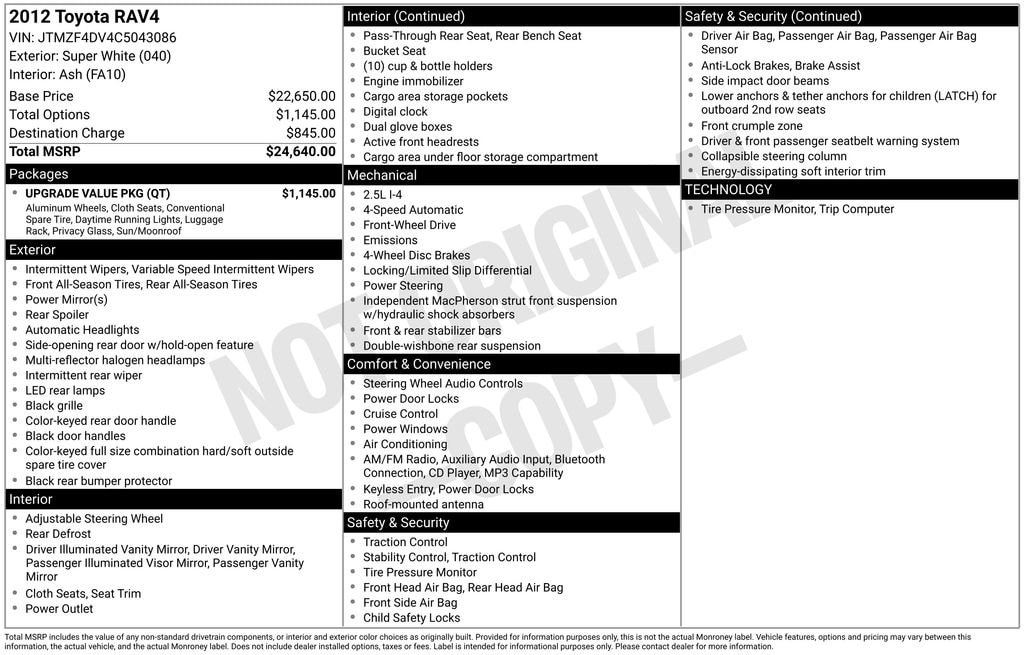 Bought a 2012 Toyota Rav4 with 71,000 one owner original miles. Excellant maintenance records excellant carfax exterior and interior in excellant like new condition. I bought it from a neighbor for $7000.00 cash that's all they wanted. Both parties very happy. New tires new brakes oil and filter changed and transmission fluid changed. Runs and looks brand new.